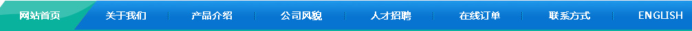 網站首頁 |  關于我們 |  產品介紹 |  公司風貌 |  人才招聘 |  在線訂單 |  聯系方式 |  ENGLISH    網站地圖